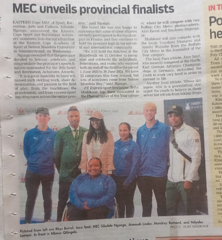 Mbasa Qilingele’s work continues to be recognized across the Eastern Cape and beyond. In a feature published in the local press, Mbasa was seen representing excellence alongside other elite provincial athletes at the Eastern Cape Academy of Sport gathering at Nelson Mandela University.